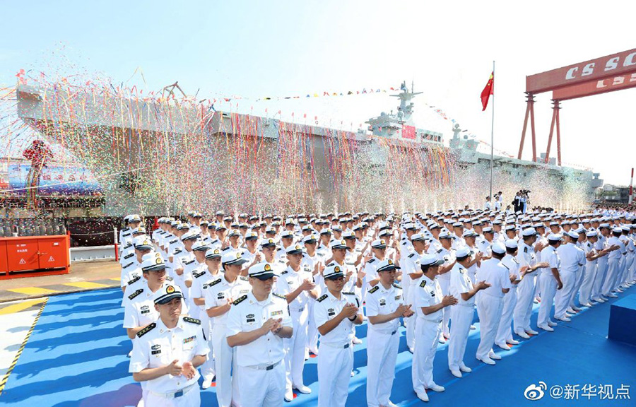 9月25日上午,中國海軍首艘兩棲攻擊艦下水儀式在上海舉行。