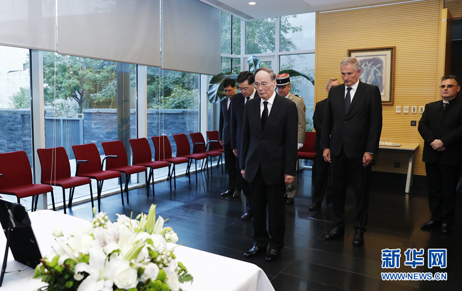 新華社北京9月28日電 國家副主席王岐山28日前往法國駐華使館,吊唁法國前總統(tǒng)雅克·希拉克逝世。