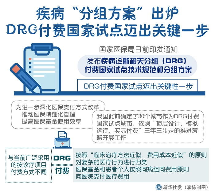 新華社北京10月24日電(記者張泉)國家醫(yī)保局日前印發(fā)通知,發(fā)布疾病診斷相關(guān)分組(DRG)付費(fèi)國家試點(diǎn)技術(shù)規(guī)范和分組方案,DRG付費(fèi)國家試點(diǎn)邁出關(guān)鍵性一步。