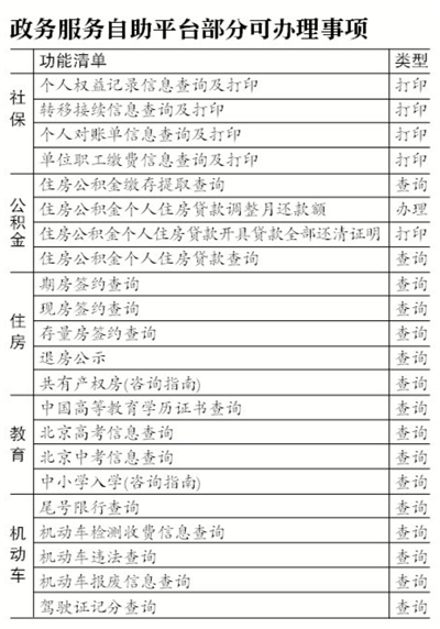 日前,北京市政務(wù)服務(wù)局在城六區(qū)及通州區(qū)政務(wù)服務(wù)中心和部分街道、社區(qū)配置100臺(tái)自助服務(wù)終端。市民調(diào)整公積金貸款月還款額,查詢及打印個(gè)人權(quán)益記錄信息、單位職工繳費(fèi)信息、個(gè)人信用記錄報(bào)告,打印電子營(yíng)業(yè)執(zhí)照影印件等上百項(xiàng)業(yè)務(wù)均可自助辦理。