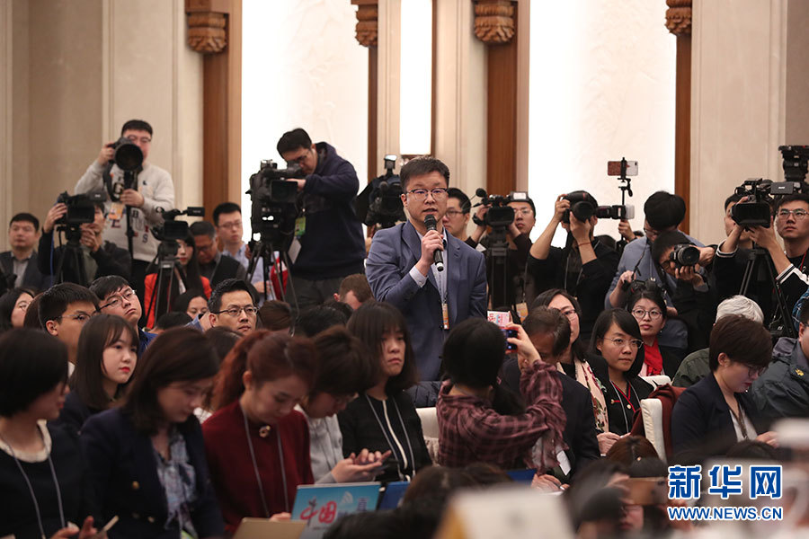 全國政協(xié)十三屆二次會議新聞發(fā)布會于3月2日15:00在人民大會堂一層新聞發(fā)布廳召開,大會新聞發(fā)言人郭衛(wèi)民向中外媒體介紹本次大會有關(guān)情況并回答記者提問。圖為中國新聞社記者。新華網(wǎng)/中國政府網(wǎng) 馬娟 攝