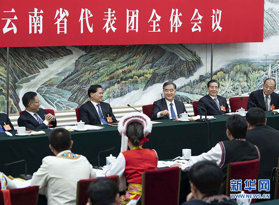 汪洋分別參加臺灣代表團、云南代表團審議。在臺灣代表團,汪洋在認(rèn)真聽取符之冠、陳云英、陳軍等代表發(fā)言后指出,習(xí)近平總書記在《告臺灣同胞書》發(fā)表40周年紀(jì)念會上的重要講話,是指引新時代對臺工作的綱領(lǐng)性文獻。要學(xué)深悟透講話的精神實質(zhì)和核心要義,深刻認(rèn)識兩岸統(tǒng)一是歷史大勢,牢牢把握對臺工作正確方向。要廣泛深入聽取臺灣同胞的意見,完善配套政策,把促進兩岸經(jīng)濟文化交流合作“31條措施”等惠臺舉措落到實處,深化兩岸融合發(fā)展。要堅持一個中國原則和“九二共識”,堅決反對“臺獨”,團結(jié)更多臺灣同胞共擔(dān)民族大義,為推動兩岸關(guān)系和平發(fā)展、推進祖國和平統(tǒng)一進程作出更大貢獻。在云南代表團,汪洋認(rèn)真聽取阮成發(fā)、馬正山、玉龍等代表的發(fā)言,充分肯定過去一年云南改革發(fā)展取得的成績。他希望云南深入貫徹習(xí)近平總書記對云南工作的重要指示精神,堅定不移落實黨的民族政策和宗教工作基本方針,大力幫助人口較少民族和“直過民族”發(fā)展,努力打造民族團結(jié)進步示范區(qū)。要堅決打好脫貧攻堅戰(zhàn),努力攻克深度貧困堡壘,著力提高脫貧質(zhì)量,確保全面小康路上一個都不掉隊。