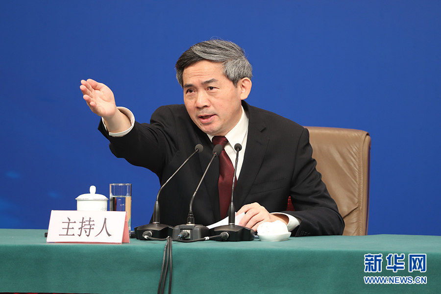 十三屆全國人大二次會議新聞中心3月8日10時在梅地亞中心新聞發(fā)布廳舉行記者會,邀請國務委員兼外交部長王毅就“中國外交政策和對外關系”相關問題回答中外記者提問。圖為記者會主持人何紹仁。新華網/中國政府網 陳杰 攝