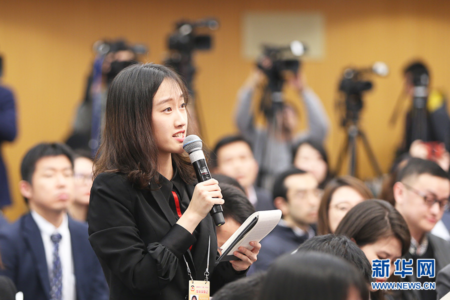 十三屆全國人大二次會議新聞中心3月9日(星期六)15時在梅地亞中心新聞發(fā)布廳舉行記者會,邀請國務院國資委主任肖亞慶,副主任翁杰明,秘書長、新聞發(fā)言人彭華崗就“國有企業(yè)改革發(fā)展”相關(guān)問題回答中外記者提問。圖為中國證券報全媒體記者提問。新華網(wǎng)/中國政府網(wǎng) 劉廈 攝