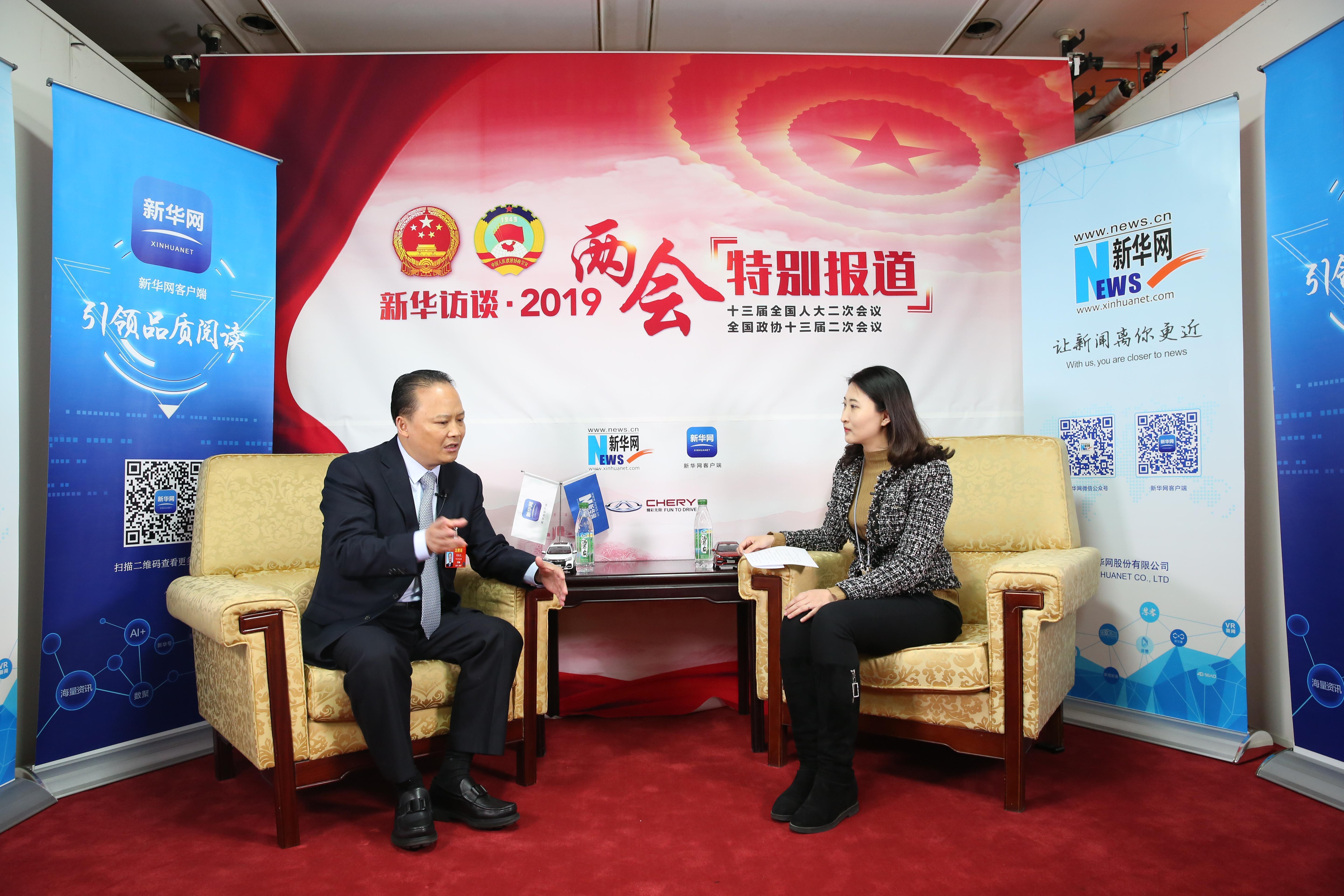 全國(guó)人大代表、通威集團(tuán)董事局主席劉漢元(左)做客新華網(wǎng)2019年全國(guó)兩會(huì)訪談。