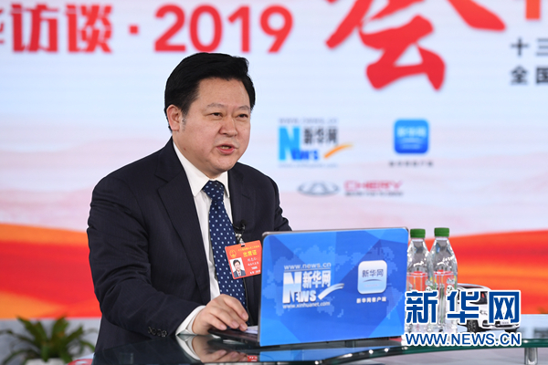 3月12日,全國(guó)人大代表、郴州市市長(zhǎng)劉志仁做客新華網(wǎng)。新華網(wǎng) 李相博 攝