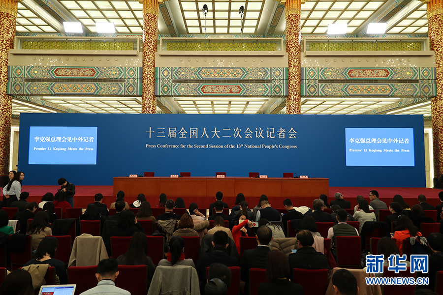 3月15日上午十三屆全國(guó)人大二次會(huì)議閉幕后,國(guó)務(wù)院總理李克強(qiáng)在人民大會(huì)堂三樓金色大廳會(huì)見(jiàn)采訪十三屆全國(guó)人大二次會(huì)議的中外記者并回答記者提出的問(wèn)題。圖為記者會(huì)現(xiàn)場(chǎng)。新華網(wǎng)/中國(guó)政府網(wǎng) 劉廈 攝