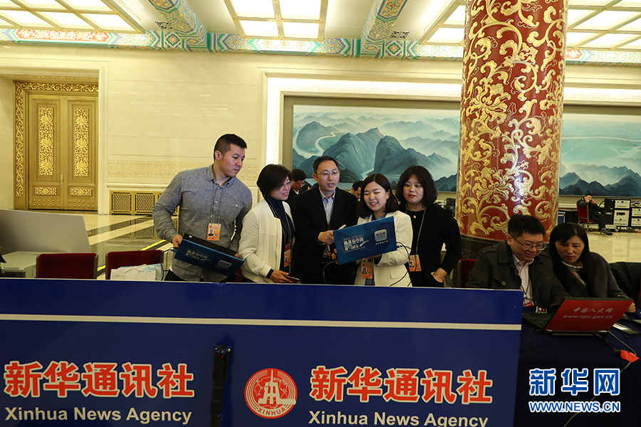 3月15日上午十三屆全國(guó)人大二次會(huì)議閉幕后,國(guó)務(wù)院總理李克強(qiáng)在人民大會(huì)堂三樓金色大廳會(huì)見采訪十三屆全國(guó)人大二次會(huì)議的中外記者并回答記者提出的問題。圖為新華網(wǎng)記者在做直播準(zhǔn)備。新華網(wǎng)/中國(guó)政府網(wǎng) 劉廈 攝