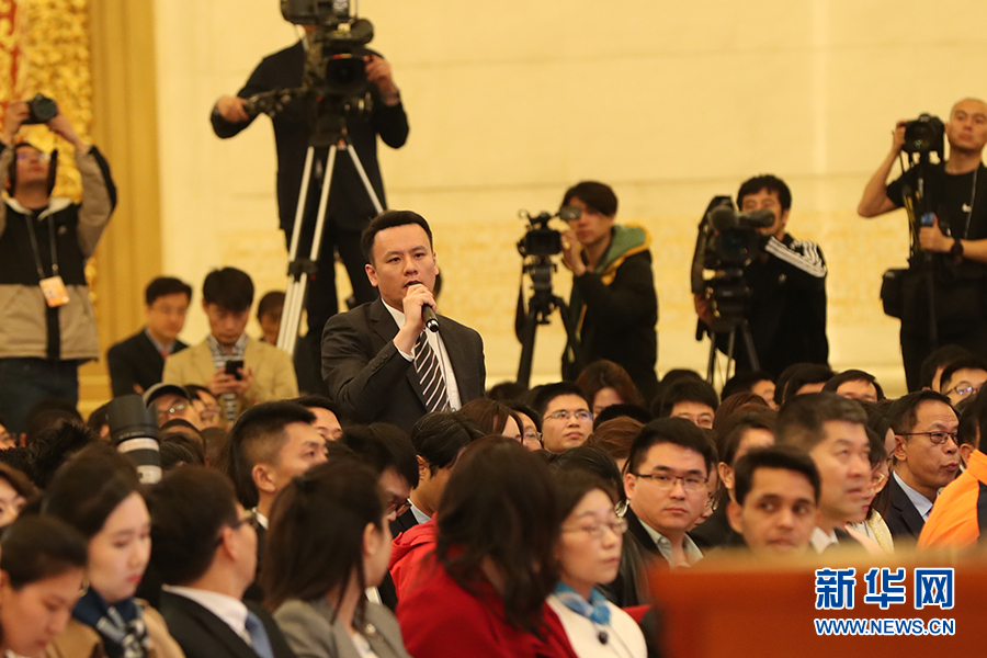 3月15日上午十三屆全國人大二次會議閉幕后,國務(wù)院總理李克強(qiáng)在人民大會堂三樓金色大廳會見采訪十三屆全國人大二次會議的中外記者并回答記者提出的問題。圖為中國新聞社、中國新聞網(wǎng)記者提問。新華網(wǎng)/中國政府網(wǎng)?陳杰 攝