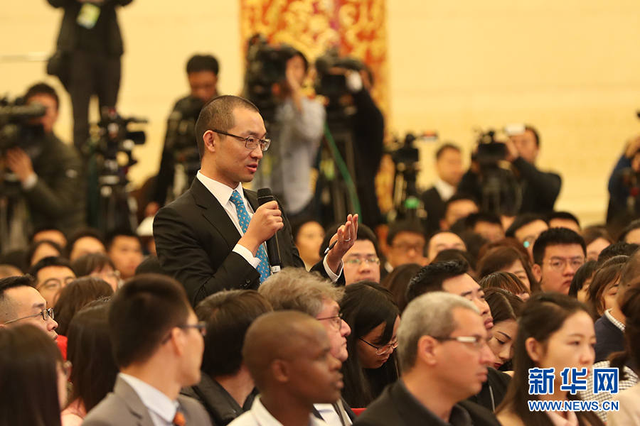 ??? 3月15日上午十三屆全國(guó)人大二次會(huì)議閉幕后,國(guó)務(wù)院總理李克強(qiáng)在人民大會(huì)堂三樓金色大廳會(huì)見采訪十三屆全國(guó)人大二次會(huì)議的中外記者并回答記者提出的問題。圖為彭博社記者提問。新華網(wǎng)/中國(guó)政府網(wǎng)?陳杰 攝