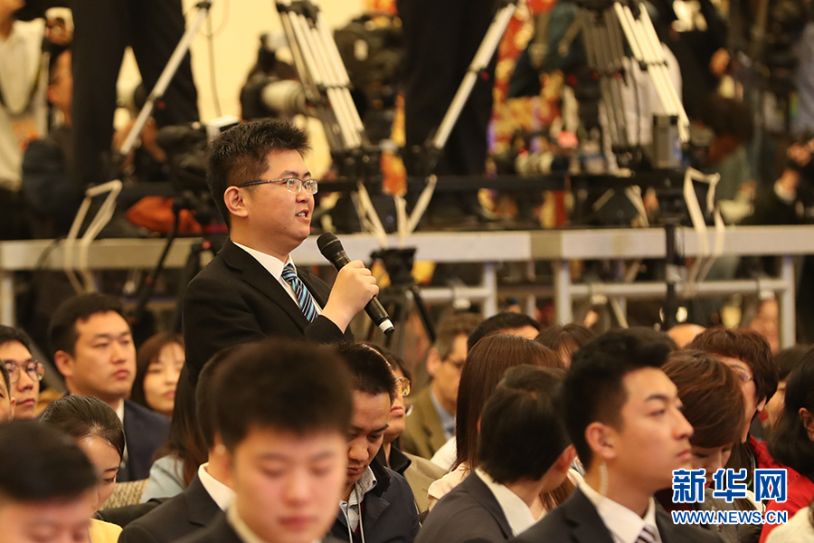3月15日上午十三屆全國人大二次會議閉幕后,國務(wù)院總理李克強在人民大會堂三樓金色大廳會見采訪十三屆全國人大二次會議的中外記者并回答記者提出的問題。圖為人民日報記者提問。新華網(wǎng)/中國政府網(wǎng)?陳杰 攝