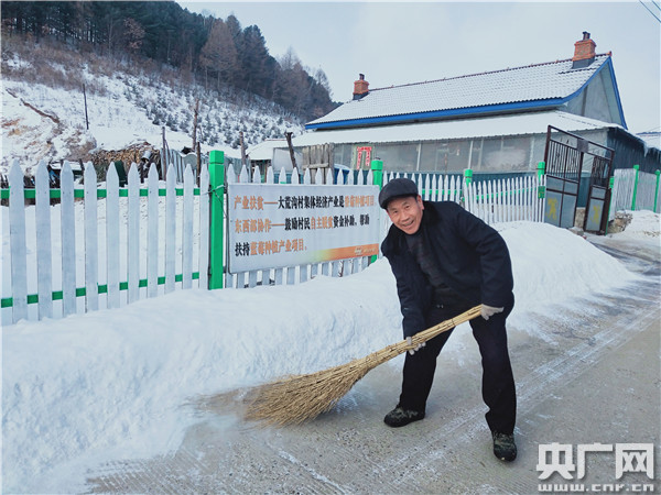 時(shí)值隆冬,通往大荒溝村的路上又下起了大雪,巍峨大山在側(cè),早已把東北的“銀裝素裹”展示給春節(jié)返鄉(xiāng)的游子。