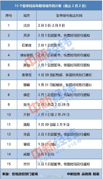 對部分上班族來說,3日是正式復(fù)工的第一天。為了減少人員聚集和交叉感染,阻斷疫情傳播,近日北京、天津、石家莊、雄安新區(qū)、邢臺、秦皇島、邯鄲、保定、焦作、開封、洛陽、許昌、晉城、成都、蘭州共15城發(fā)布了暫停機(jī)動車尾號限行的措施,減少民眾公共交通出行。