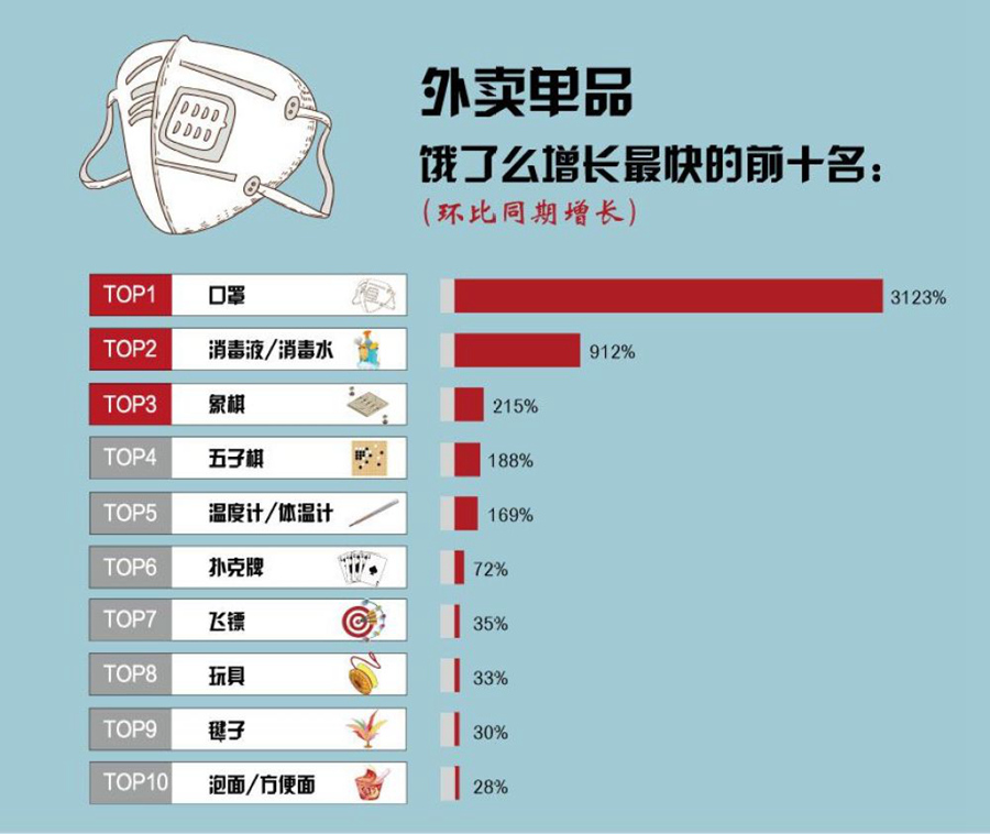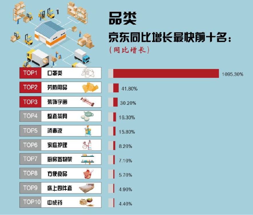 1.口罩、勞防用品、消毒液增速如此之快,這是要成為宅家標(biāo)配嗎?看來(lái)小伙伴們已經(jīng)get到了防護(hù)必備技能。