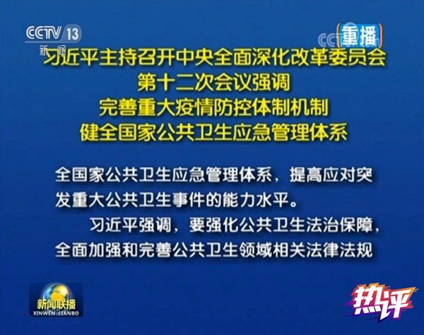 昨天的新聞稿,打破了近年來的慣例——在導(dǎo)語之后、介紹會議審議通過的若干文件之前,出現(xiàn)了習(xí)近平總書記的6段重要講話內(nèi)容,緊緊圍繞“完善重大疫情防控體制機制,健全國家公共衛(wèi)生應(yīng)急管理體系”,提了五個方面的要求。這體現(xiàn)了此事的重要與緊迫。習(xí)近平總書記針對這次疫情暴露出來的短板和不足,立足當(dāng)前、放眼長遠,圍繞這一重大改革主題,作了一次全面動員、全面部署。