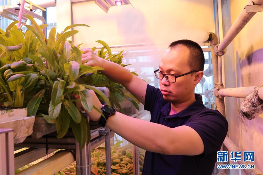 長城站科考隊(duì)員在溫室菜棚精心管理蔬菜(2月9日攝)。新華社記者 劉詩平攝
