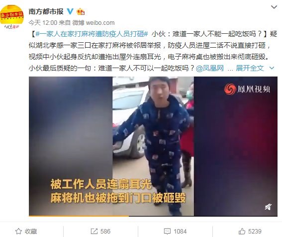 比如,一家三口在家里圍桌打麻將,突然有防疫工作人員進(jìn)來(lái),不由分說(shuō)開(kāi)始打砸,一位年輕人表示不服,竟被連抽幾個(gè)耳光;一位中年男子下樓買(mǎi)菜,進(jìn)小區(qū)時(shí)拒絕登記,與工作人員產(chǎn)生沖突,最終被幾名工作人員摁倒在地;一位東北大娘在外溜達(dá)時(shí)沒(méi)戴口罩,與社區(qū)干部發(fā)生沖突,甚至拳腳相加,最終被戴上手銬抓進(jìn)警車……