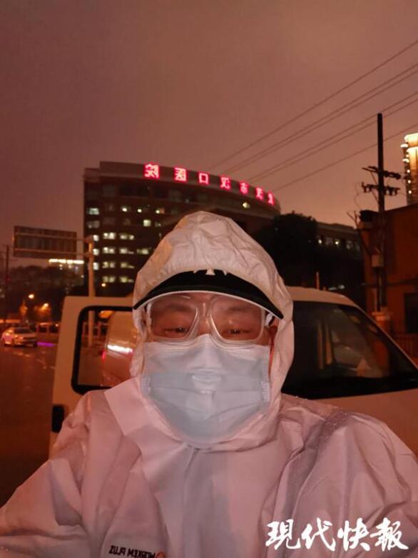 正式“工作”后,我接送的第一批疑似病人,是家住長江邊某小區(qū)的一對夫妻,發(fā)熱、咳嗽。有時也會接到運送輕癥和重癥病人轉(zhuǎn)院的任務。9 日晚上,我往返了好幾趟,將 4 名輕癥病人、6 名重癥病人,從江岸區(qū)的集中隔離點和小型醫(yī)院,轉(zhuǎn)移到武展“方艙醫(yī)院”和金銀潭醫(yī)院住院治療。從 9 日晚 8 點半一直忙到 10 日凌晨 1 點。
