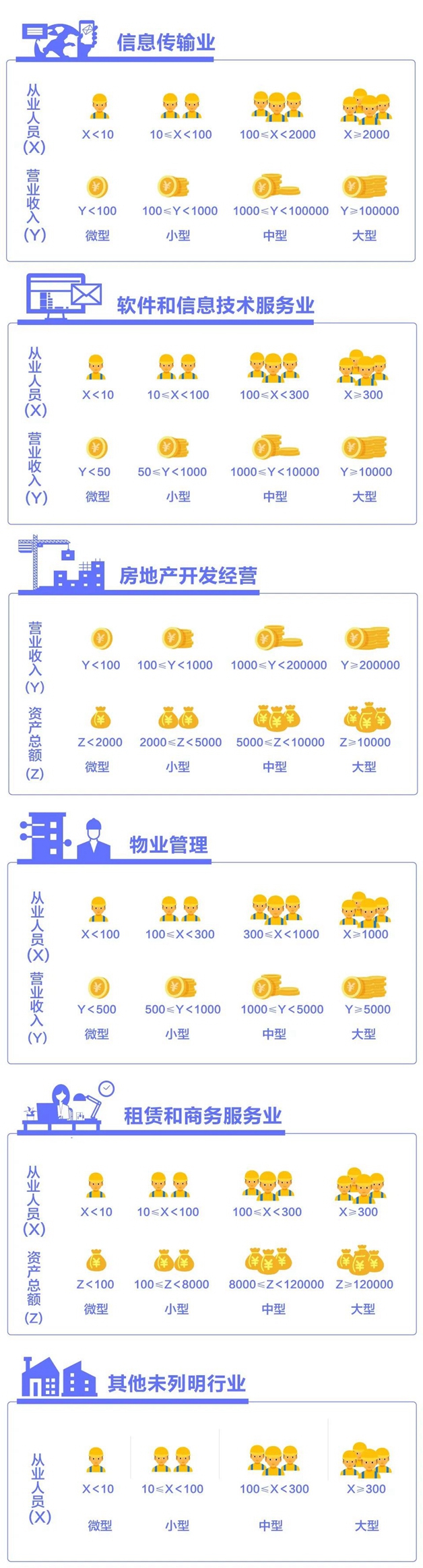 該辦法按照行業(yè)門類、大類、中類和組合類別,依據(jù)從業(yè)人員、營(yíng)業(yè)收入、資產(chǎn)總額等指標(biāo)或替代指標(biāo),將我國(guó)的企業(yè)劃分為大型、中型、小型、微型等四種類型。