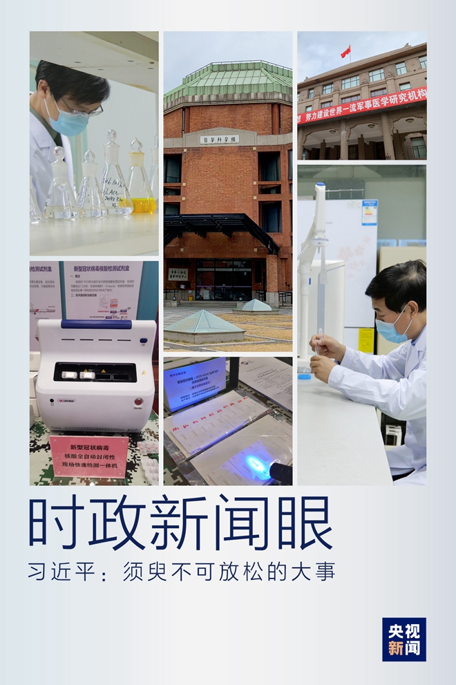 2日下午,習(xí)近平首先來(lái)到軍事醫(yī)學(xué)研究院考察。疫情發(fā)生以來(lái),軍事醫(yī)學(xué)研究院集中力量展開(kāi)應(yīng)急科研攻關(guān),取得了階段性成果。