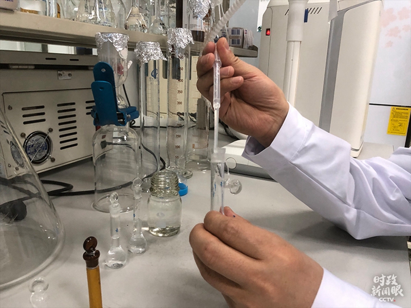 這是實(shí)驗(yàn)過(guò)程中的定容操作。(總臺(tái)央視記者彭漢明拍攝)