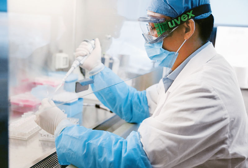 新冠肺炎疫情發(fā)生后,我國科研人員用了不到一周時間就確定了新冠病毒的全基因組序列,分離得到病毒毒株并向世界發(fā)布共享。我國在公共衛(wèi)生和醫(yī)療健康領(lǐng)域多年積淀的科研能力、平臺條件、人才儲備和技術(shù)產(chǎn)品,使我們有信心有能力最終戰(zhàn)勝這次新冠肺炎疫情,有力維護國家戰(zhàn)略安全。圖為科研人員在實驗室進行病毒核酸提取。軍事醫(yī)學(xué)研究院供圖