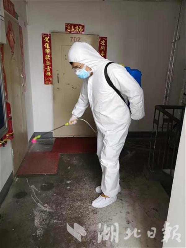 省電社區(qū)下轄的5個(gè)小區(qū)中,最大的是徐東嘉園,共15棟樓約700余戶居民,是社區(qū)新冠肺炎確診人數(shù)、疑似人數(shù)最多的小區(qū)。報(bào)到第一天,他主動(dòng)認(rèn)領(lǐng)徐東嘉園的消殺任務(wù):“我年輕、身體好,最重的活交給我就對(duì)了!”