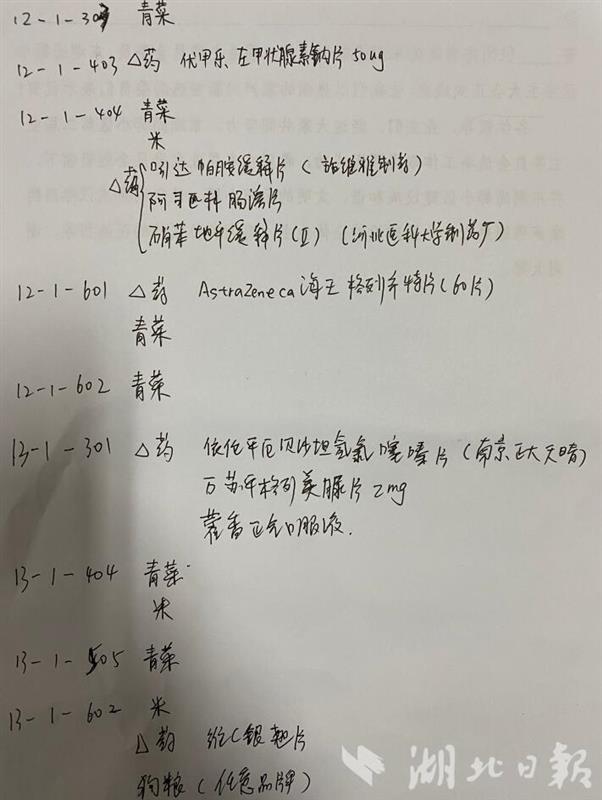 胡俊昊的任務(wù)是排查徐東嘉園10棟至12棟居民的健康情況,共96戶。在前期和本次大排查中,有8位確診病人和20位密切接觸者。他身著可反復(fù)使用的防護(hù)服,毫無(wú)畏懼前去敲門。有一戶居民早早地聽到了聲音,提前開門,送出一條巧克力:“我家孩子跟你差不多大,現(xiàn)在在火神山,你們都是英雄,辛苦了!”胡俊昊接過(guò)巧克力,感覺身上更有勁了:“謝謝您,您孩子一定會(huì)平安歸來(lái)。這段時(shí)間,您就把我當(dāng)成自家孩子,有事吩咐別見外!”一趟下來(lái),沒有排查出居家發(fā)熱人員,但胡俊昊整理了一下筆記本:36戶居民有購(gòu)菜購(gòu)藥需求。隨后,他又忙著幫居民逐一買菜、買藥。