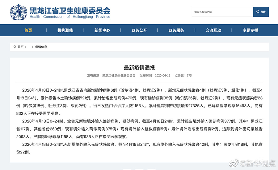 4月18日黑龍江省無新增境外輸入確診病例 省內(nèi)新增確診病例6例-新華網(wǎng)