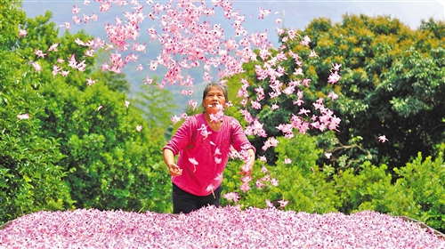 5月5日,在貴州省赤水市長沙鎮(zhèn)長興村,農(nóng)戶在晾曬剛采摘的金釵石斛鮮花。近年來,赤水市積極推進生態(tài)農(nóng)業(yè)與鄉(xiāng)村旅游產(chǎn)業(yè)融合發(fā)展,引導農(nóng)民在丹霞石上種植金釵石斛9萬余畝,助力脫貧攻堅和鄉(xiāng)村振興。王長育攝(中經(jīng)視覺)