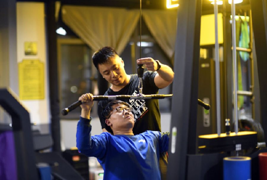 1月10日,市民在北京通州梨園東郎產(chǎn)業(yè)園一家健身房鍛煉。不久后,新冠肺炎疫情導(dǎo)致健身場所大面積停業(yè) 金良快/攝