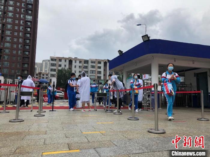 6時30分,該校初三學(xué)生陸續(xù)返回校園。在校門前,他們按照地面上的標(biāo)識保持間距,經(jīng)過測溫、手部消毒后進(jìn)入教學(xué)樓。當(dāng)天,729名初三年級學(xué)生錯峰、錯時抵達(dá)教室。
