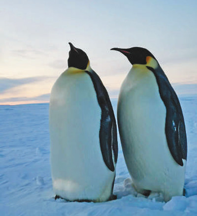 5月26日,隊(duì)員在普里茲灣海冰觀(guān)測(cè)途中偶遇的企鵝。孫曉宇攝