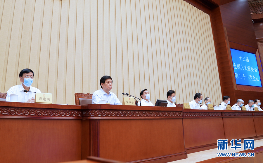 8月8日,十三屆全國人大常委會第二十一次會議在北京人民大會堂舉行第一次全體會議,栗戰(zhàn)書委員長主持。 新華社記者 張領 攝