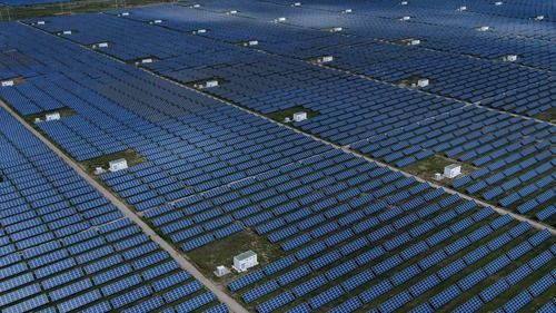 青海省海南藏族自治州共和縣塔拉灘光伏電站(8月17日攝,無人機(jī)照片)。新華社記者 張龍 攝