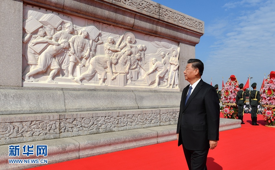 9月30日上午,黨和國家領(lǐng)導(dǎo)人習(xí)近平、李克強、栗戰(zhàn)書、汪洋、王滬寧、趙樂際、韓正、王岐山等來到北京天安門廣場,出席烈士紀念日向人民英雄敬獻花籃儀式。這是習(xí)近平瞻仰人民英雄紀念碑。 新華社記者 岳月偉 攝