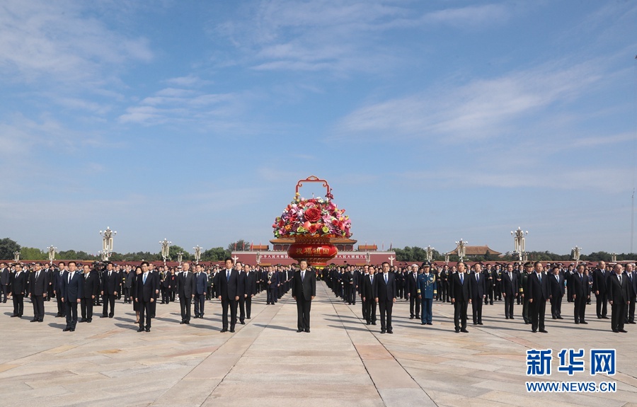 新華社北京9月30日電 緬懷革命先烈,弘揚英雄精神。烈士紀念日向人民英雄敬獻花籃儀式30日上午在北京天安門廣場隆重舉行。黨和國家領(lǐng)導(dǎo)人習(xí)近平、李克強、栗戰(zhàn)書、汪洋、王滬寧、趙樂際、韓正、王岐山等,同各界代表一起出席儀式。