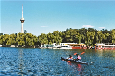 秋高氣爽、天藍(lán)水清,玉淵潭公園南側(cè)的八一湖碧波蕩漾,五彩的皮劃艇在水中游弋……從9月份開(kāi)始,八一湖內(nèi)2萬(wàn)平方米的水域正式成為北京市天然河湖水域,并向市民開(kāi)放水上運(yùn)動(dòng)試點(diǎn),市民可體驗(yàn)和學(xué)習(xí)皮劃艇運(yùn)動(dòng)。實(shí)際上,“十三五”以來(lái),越來(lái)越多的北京城市河湖已經(jīng)從之前的“閑人勿進(jìn)”變成了市民的親水樂(lè)園。