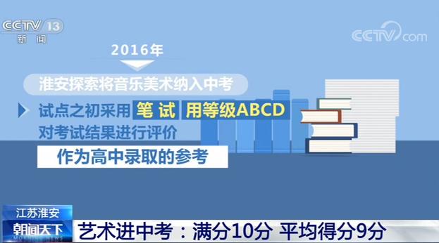 2016年,淮安探索將音樂美術納入中考,試點之初采用筆試、用等級ABCD對考試結果進行評價,作為高中錄取的參考。2018年,改革進一步深化,音樂、美術各以滿分5分分值計入中考總分,共十分,考核內容主要是音樂、美術基本知識和基本素養(yǎng),考試方式由筆試調整為人機對話考核,不再局限在基本知識,而是注重考察學生對音樂和美術作品等欣賞辨析能力。