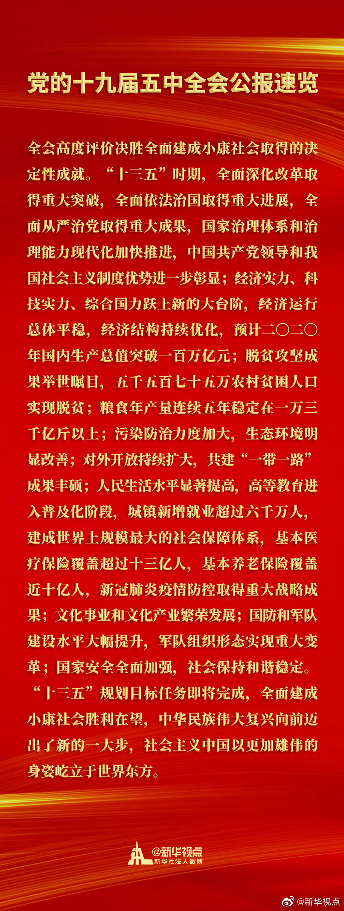 黨的十九屆五中全會(huì)公報(bào)速覽丨全會(huì)高度評(píng)價(jià)決勝全面建成小康社會(huì)取得的決定性成就-新華網(wǎng)
