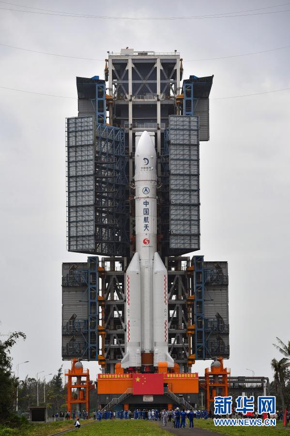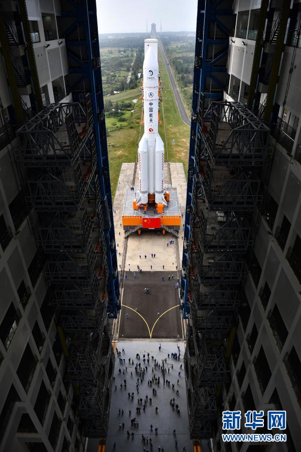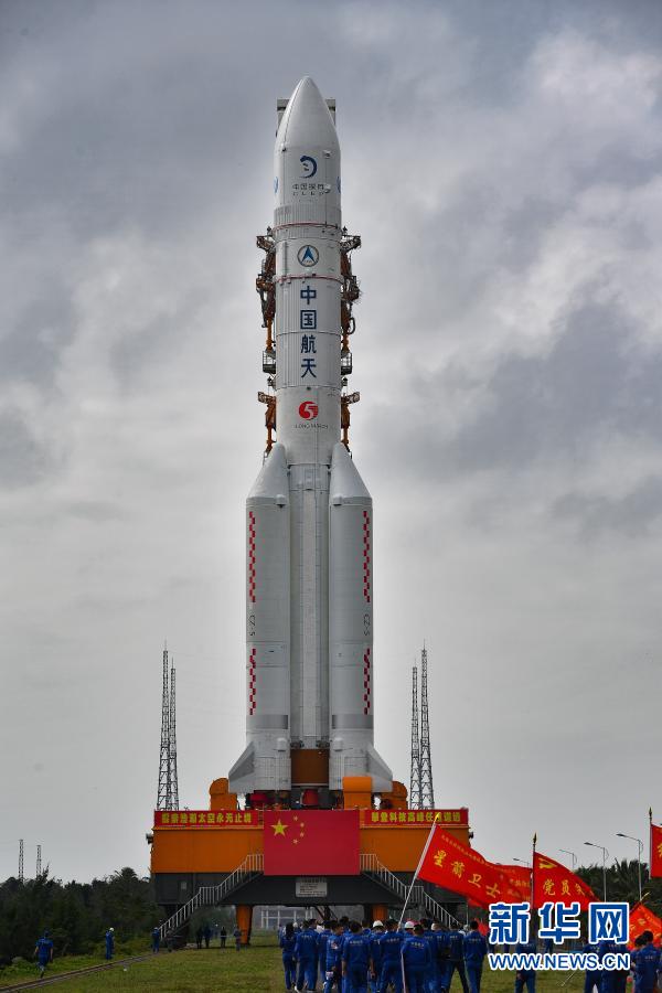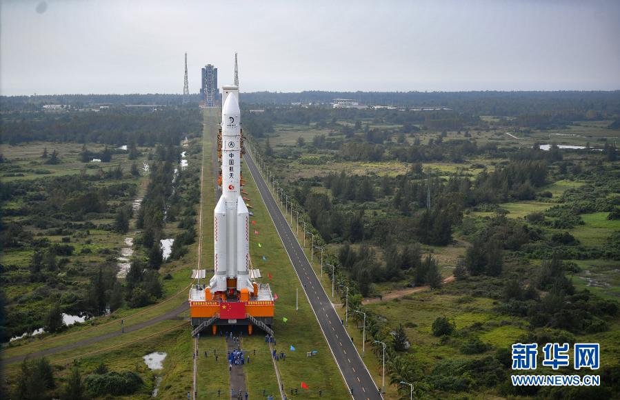 新華社海南文昌11月17日電(記者胡喆、陳凱姿)記者從國家航天局獲悉,11月17日,長征五號遙五運(yùn)載火箭和嫦娥五號探測器在中國文昌航天發(fā)射場完成技術(shù)區(qū)總裝測試工作后,垂直轉(zhuǎn)運(yùn)至發(fā)射區(qū),計(jì)劃于11月下旬擇機(jī)實(shí)施發(fā)射。