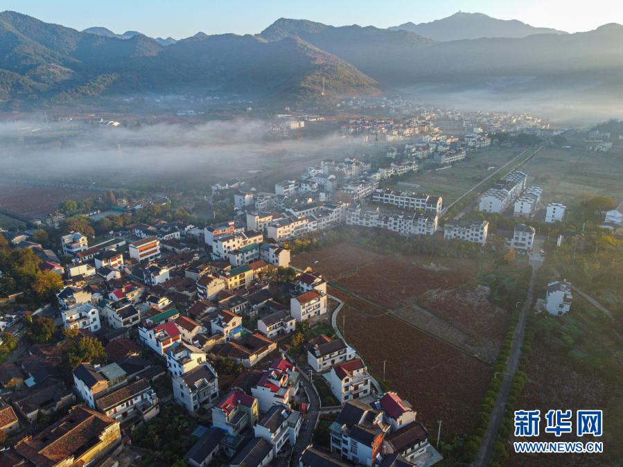 這是11月18日拍攝的沐浴在晨光中的大陳村(無(wú)人機(jī)照片)。新華社發(fā)(江漢 攝)