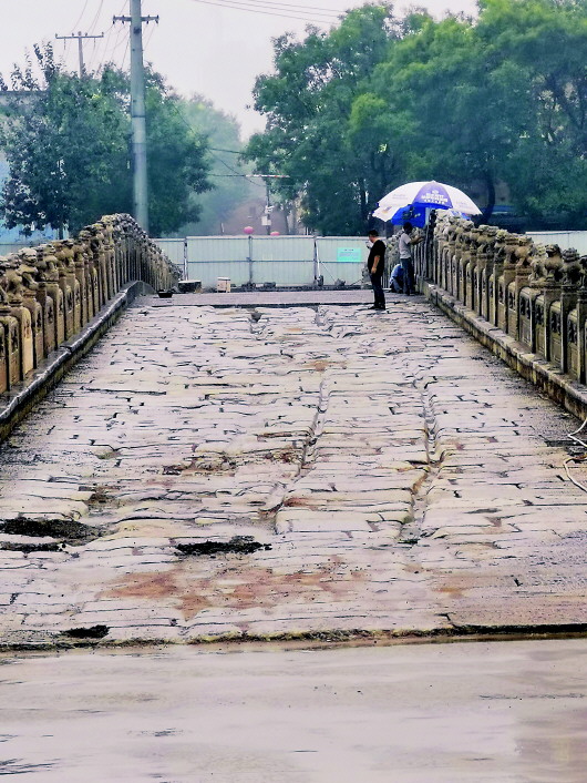 然而,衡水市文物部門(mén)沒(méi)有嚴(yán)格履行設(shè)計(jì)變更申請(qǐng)手續(xù),而是與專(zhuān)家“匯報(bào)溝通后”,采購(gòu)新條石修補(bǔ)中孔正上方橋面。其他橋面則保留原始風(fēng)貌。
