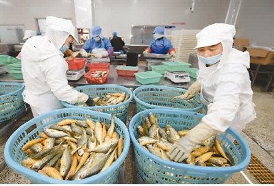 今年以來,福建省霞浦縣稅務(wù)部門全力優(yōu)化出口退稅流程,有效緩解企業(yè)資金壓力,助力企業(yè)順應(yīng)形勢(shì)開拓海內(nèi)外市場。1-10月,霞浦縣共辦理出口退稅1.46億元。圖為福建省海洋絲路漁業(yè)有限公司員工在加工出口美國的大黃魚。新華社記者 宋為偉攝