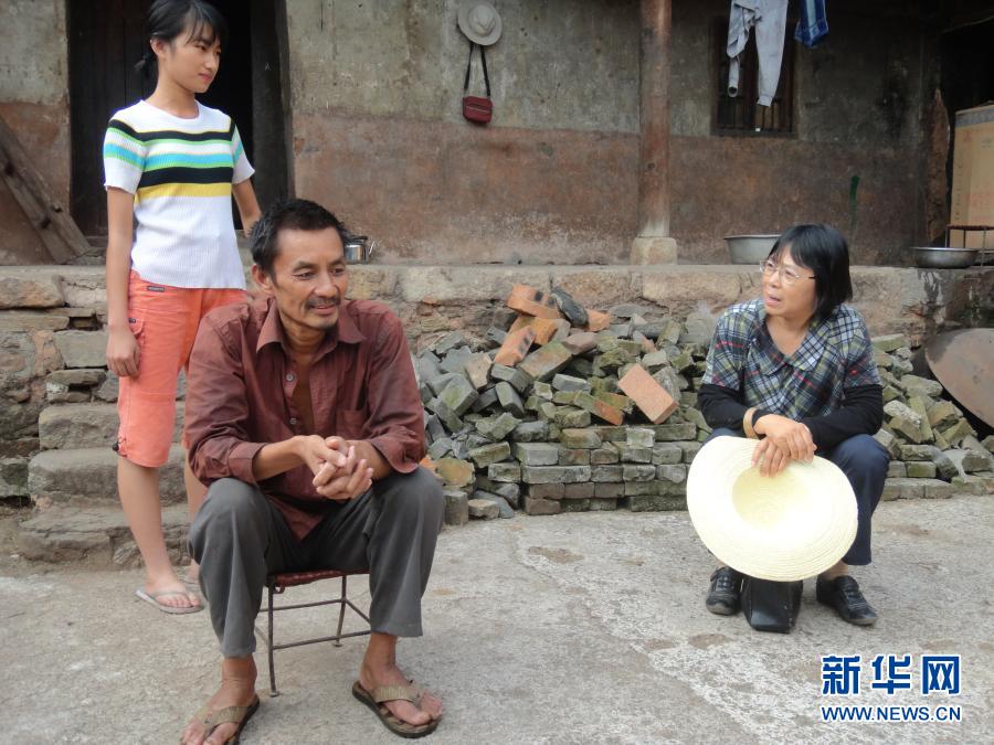 張桂梅(右)在進行家訪(2011年7月攝)。新華社發(fā)(華坪縣委宣傳部供圖)