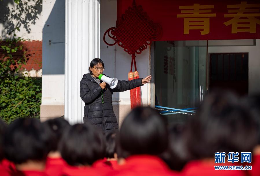 張桂梅在督促學生做課間操(12月2日攝)。新華社發(fā)(陳欣波 攝)