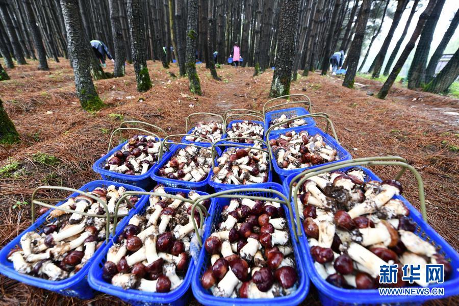 這是村民在貴州省威寧縣觀風(fēng)海鎮(zhèn)沙子坡林場采摘的林下食用菌(6月18日攝)。新華社記者 楊文斌 攝