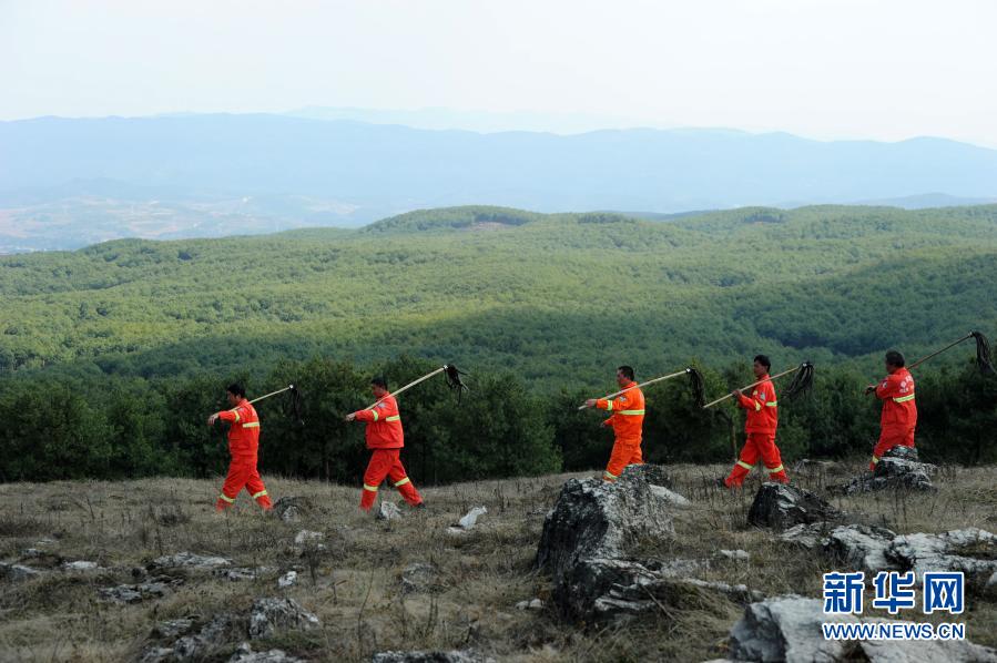 貴州省威寧縣觀風(fēng)海鎮(zhèn)沙子坡林場的護(hù)林員在林區(qū)進(jìn)行火險(xiǎn)巡查(2018年3月10日攝)。新華社記者 楊文斌 攝