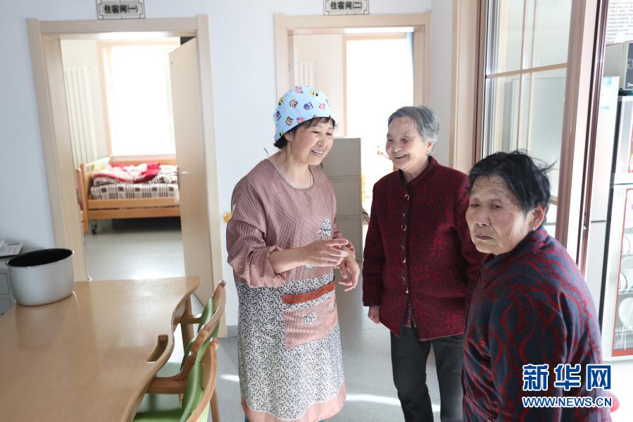 10月22日,西寧市城西區(qū)溫馨陽光托老所內,護理員張蓉霞(左)在與老人聊天。新華社記者 吳剛 攝