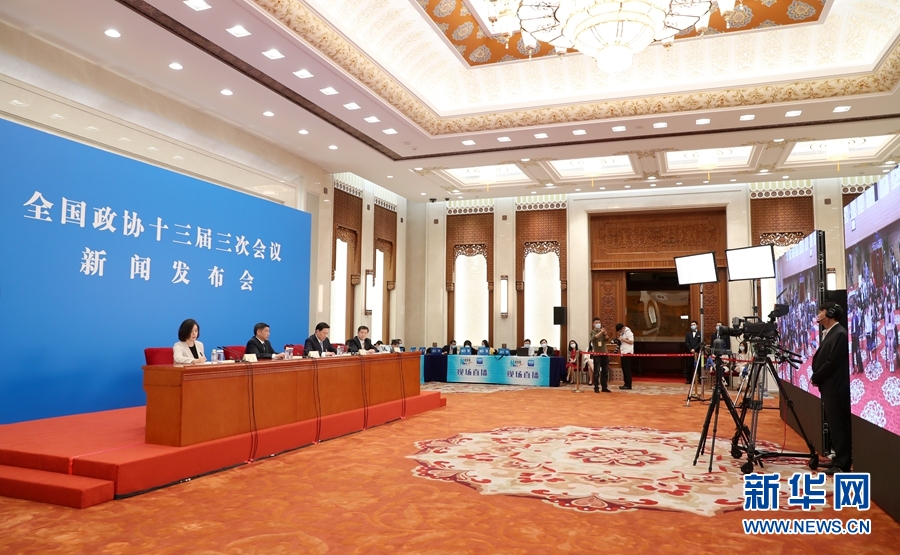 5月20日,全國(guó)政協(xié)十三屆三次會(huì)議新聞發(fā)布會(huì)在北京舉行,大會(huì)新聞發(fā)言人郭衛(wèi)民介紹本次大會(huì)有關(guān)情況并回答中外記者提問(wèn)。圖為人民大會(huì)堂新聞發(fā)布廳現(xiàn)場(chǎng)。新華網(wǎng) 王翰林 攝